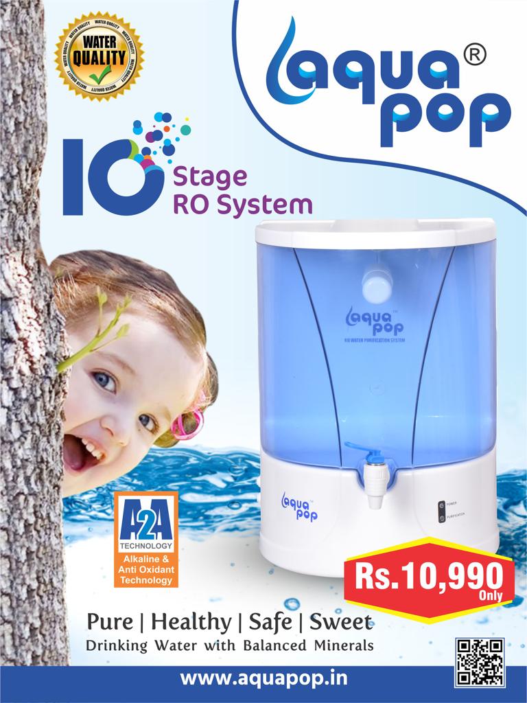 AQUA POP ARIO Purifiers remove bacteria, viruses, chemicals and even dissolved impurities such as arsenic, rust, pesticides & fluorides to make water 100% pure & healthy