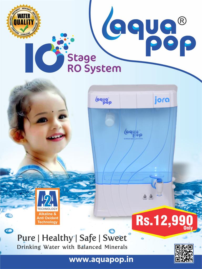 AQUA POP JORA Purifiers remove bacteria, viruses, chemicals and even dissolved impurities such as arsenic, rust, pesticides & fluorides to make water 100% pure & healthy